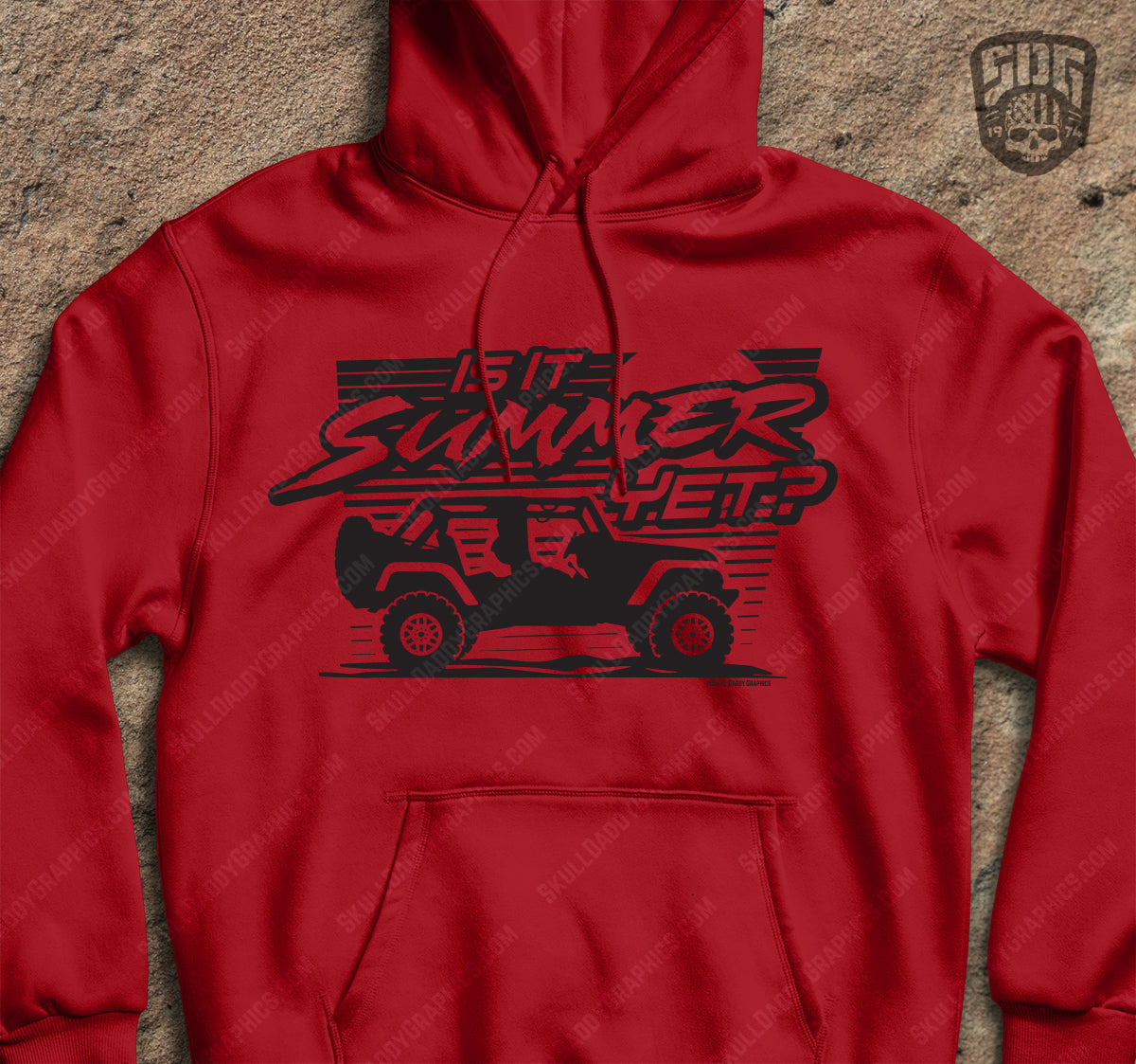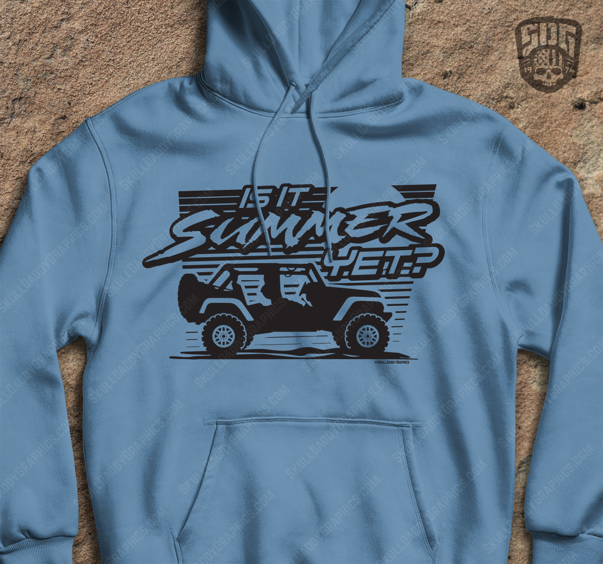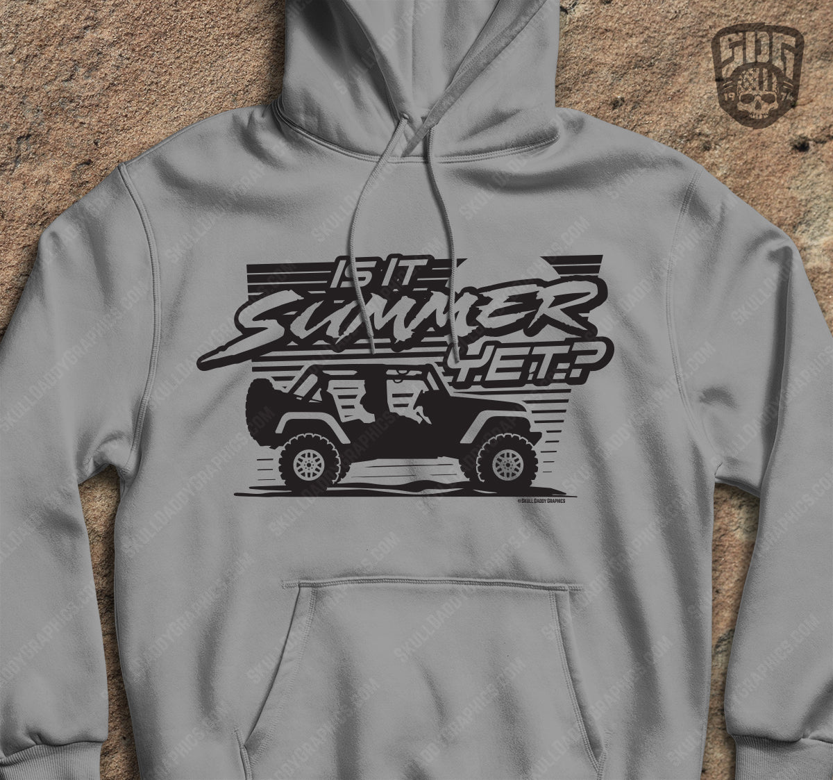 Winter sucks! Hoodies make it better though. Get our brand new, redesigned 'Is it Summer Yet?' graphic with a naked JL/JKU on an 8oz 50/50 Gildan Hoodie.